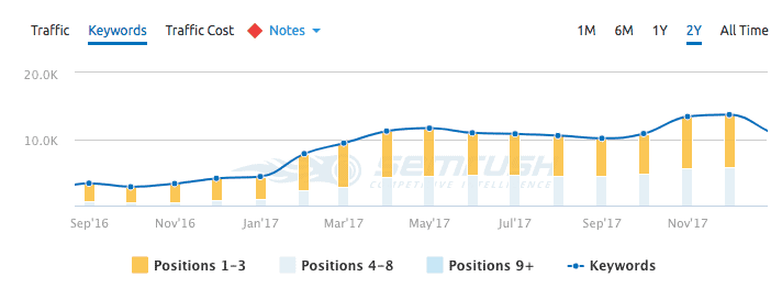 An increase in visibility above the fold for their top keyword targets